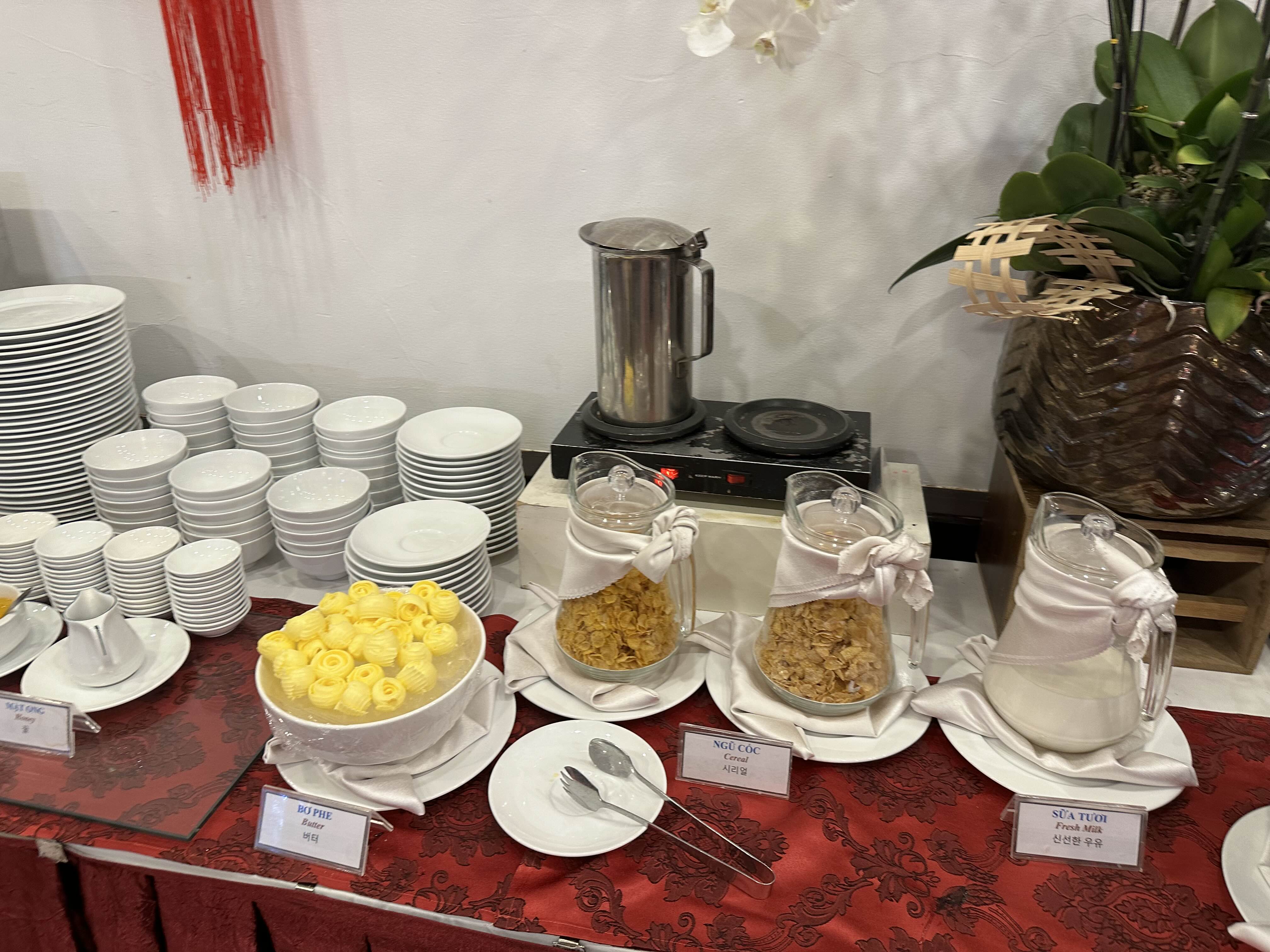 1층의 조식당은 서양식, 한식, 현지식, 과일, 후식이 조금씩 골고루 있는 식당이었습니다